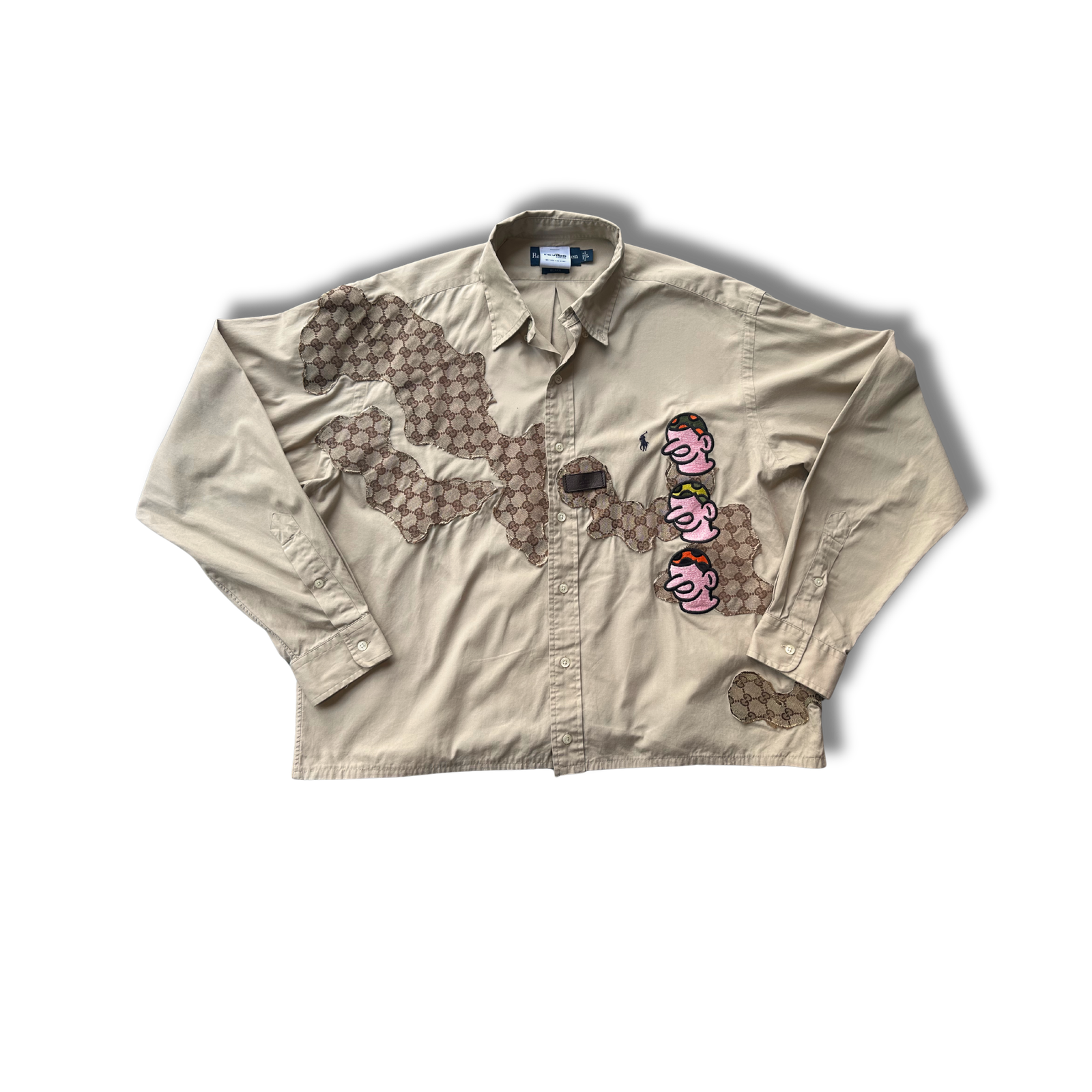 A heritage icon reworked with quiet rebellion. This Ralph Lauren polo is stitched with Gucci patches—sourced from a vintage bag—each cut, each thread, a story retold.